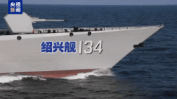 此次联合演习期间,面对一些国家的飞机和舰船不断出现在周边,绍兴舰从容淡定,向外发出中国声音。